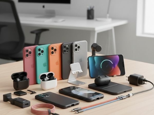 ▼スマホ関連アクセサリーの部品や材料を準備し、作業台にセットします。